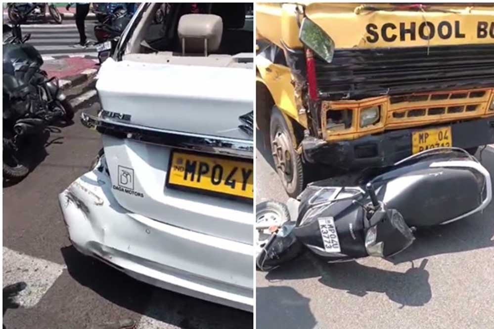 जानकारी के मुताबिक टीटीनगर थाना इलाके में रोशनपुरा स्थित विधायक भगवान दास सबनानी के आवास के सामने स्थित लाल बत्ती चौक यह हादसा हुआ है। एक तेज रफ्तार स्कूल बस ने कार, स्कूटी और बाइक समेत करीब छह वाहनों में पीछे से जबरदस्त टक्कर मारी।