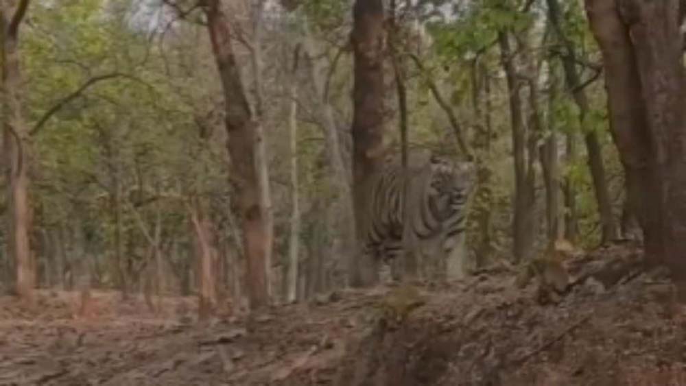 कुदरगढ़ क्षेत्र में आज सुबह-सुबह एक बाघ घूमता हुआ दिखाई दिया, राहगिरों ने बनाया