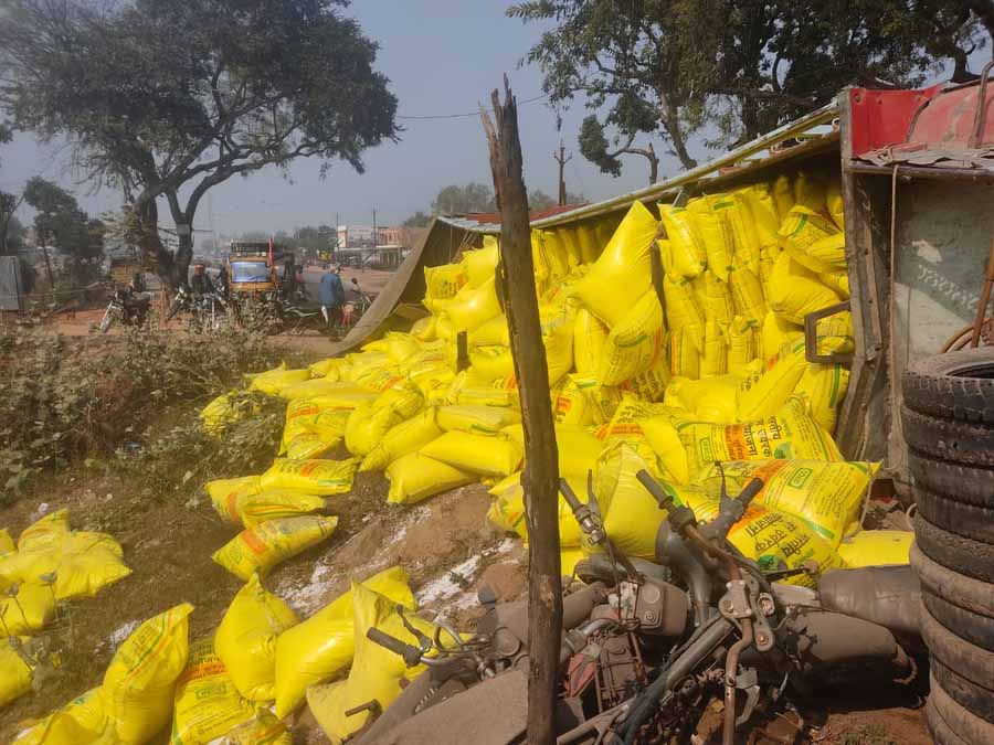 कोहरे के कारण यूरिया से भरा ट्रक पलटा