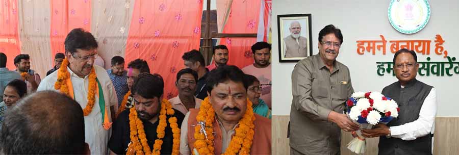 भाजपा प्रदेश कार्यसमिति सदस्य एवम बेटी बचाओ बेटी पढ़ाओ के प्रदेश संयोजक अंजय शुक्ल ने छत्तीसगढ़ में नगरीय निकाय चुनाव में अपार सफलता पर प्रदेश के मुख्यमंत्री विष्णु देव साय से सौजन्य मुलाक़ात कर उन्हें बधाई दी। इसी तारतम्य में श्री शुक्ल को गोबरा नवापारा में उपाध्यक्ष चुनाव हेतू पर्यवेक्षक बनाये जाने पर उनके सभी शुभचिंतको ने उन्हें शुभकामनाएं एवं बधाई दी। यहाँ के स्थानीय कार्यकर्ताओ एव पार्टी से जुड़े लोगो ने कहा की अंजय शुक्ल के नेतृत्व में 20 वर्षों के बाद नेतृत्व में नगर पालिका में भाजपा की सरकार बनी है अब यहाँ उन्ही के मार्गदर्शन में उपाध्यक्ष भी बनेगा।