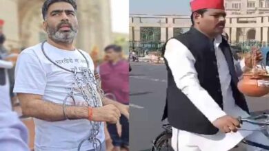 विधानसभा के बाहर समाजवादी पार्टी के विधायक ने बेड़िया पहन किए प्रर्दशन