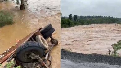बलरामपुर जिले में जोरदार बारिश, उफनती नदी में अनियंत्रित होकर पलटी ट्रक, बाल-बाल बचे 5 लोग