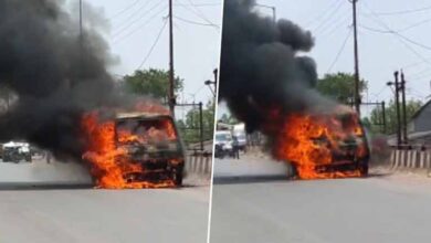 भाटापारा में एक चलती वैन में भीषण आग, मची अफरा-तफरी
