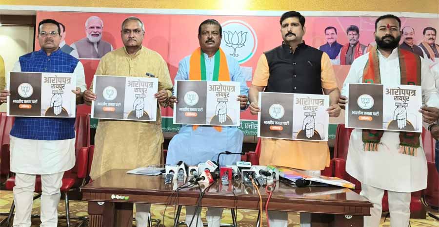रायपुर नगर निगम में कांग्रेस के 15 साल के कुशासन पर भाजपा ने जारी किया आरोप पत्र