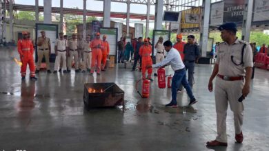 फायर ऑफिसर के नेतृत्व में फायर मॉक ड्रिल का आयोजन किया गया
