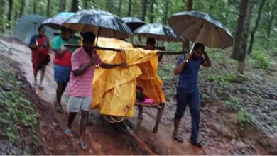 कोरबा में बारिश के दौरान मरीज को खाट पर लिटाकर सात किलोमीटर पैदल चलना पड़ा