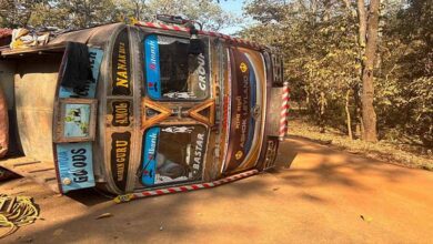 चावल से भरी ट्रक दरभा घाटी में पलटा, बाल-बाल बचे तीन सवार