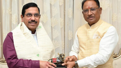 रायपुर : मुख्यमंत्री विष्णुदेव साय ने केंद्रीय मंत्री प्रहलाद जोशी का किया आत्मीय स्वागत