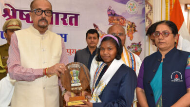रायपुर : राज्यपाल डेका ने राष्ट्रीय बाल पुरूस्कार से सम्मानित बालिका का किया सम्मान