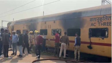 शॉर्ट सर्किट से खड़ी ट्रेन की एसी बोगी में लगी आग, मौके पर पहुंचे दमकल कर्मी