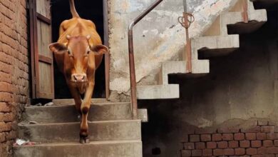 जब आवारा कुत्तों से बचने के लिए एक गाय इमारत की तीसरी मंजिल पर चढ़ी