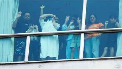 पनामा के एक होटल में रखे गए प्रवासी कागज पर लिखे संदेशों के जरिए मदद की गुहार लगा रहे लोग
