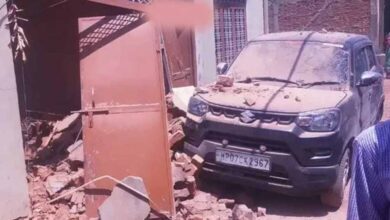 शिवपुरी के पिछोर में एक शिक्षक के घर पर आसमान से गिरी कोई वस्तु की वजह से दो कमरे ध्वस्त