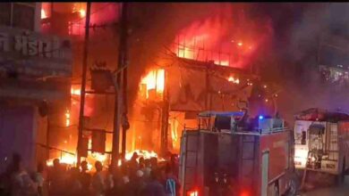 मध्य प्रदेश के रीवा में एलजी कंपनी के शोरूम लगी भीषण आग, कई किलोमीटर दूर तक उठी लपटें