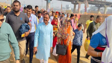 मंत्री राकेश शुक्ला ने रविवार को सपरिवार प्रयागराज के संगम में कुंभ स्नान किया