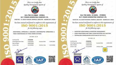 पॉवर जनरेटिंग कंपनी जबलपुर के दो कार्यालयों को मिला आईएसओ 9001 सर्टिफिकेशन