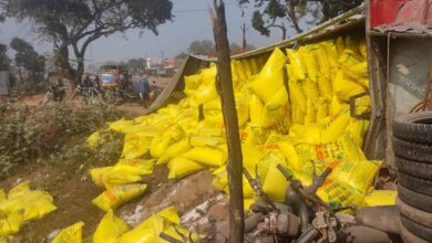 कोहरे के कारण यूरिया से भरा ट्रक पलटा