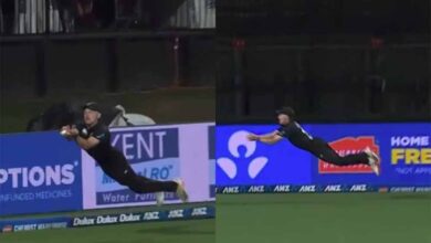 न्यूजीलैंड के ऑलराउंडर नाथन स्मिथ ने हैमिल्टन के मैदान पर एक खतरनाक कैच पकड़ा, जिसने सभी को हैरत में डाल दिया