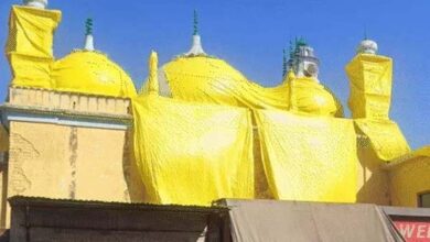 संभल में होली को लेकर सड़क किनारे स्थित मस्जिदों को सुरक्षित करने के लिए तिरपालों से ढंकने का काम शुरू