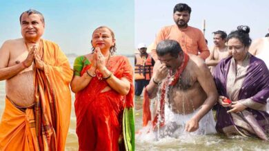 प्रयागराज पहुंचे केंद्रीय मंत्री नितिन गडकरी और धर्मेंद्र प्रधान, लगाई संगम में डुबकी