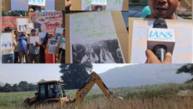 सपा कार्यालय के बाहर दलित किसानों ने किया विरोध प्रदर्शन, सपा नेता पर लगाया जमीन कब्जाने का आरोप