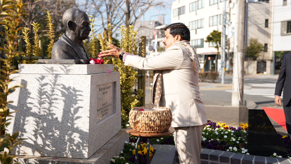 मुख्यमंत्री डॉ. मोहन यादव ने जापान में महात्मा गांधी की प्रतिमा पर पुष्पांजलि अर्पित की