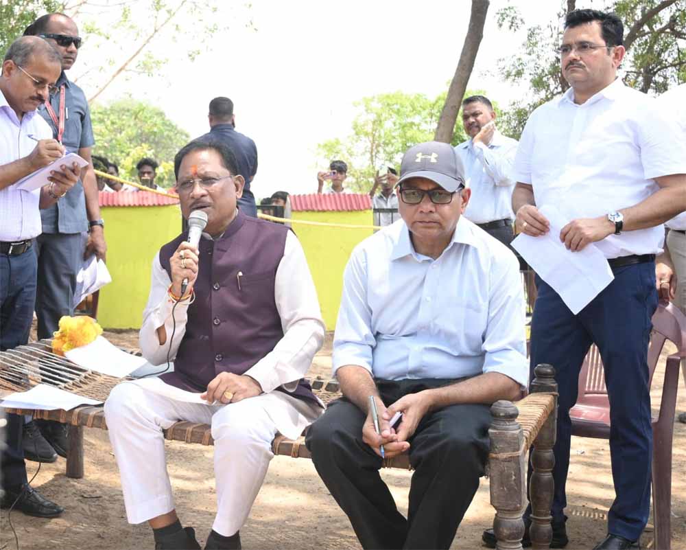 मुख्यमंत्री साय ने सक्ती के ग्राम करिगांव का किया दौरा, पेड़ के नीचे खाट लगाकर ग्रामीणों से किया संवाद