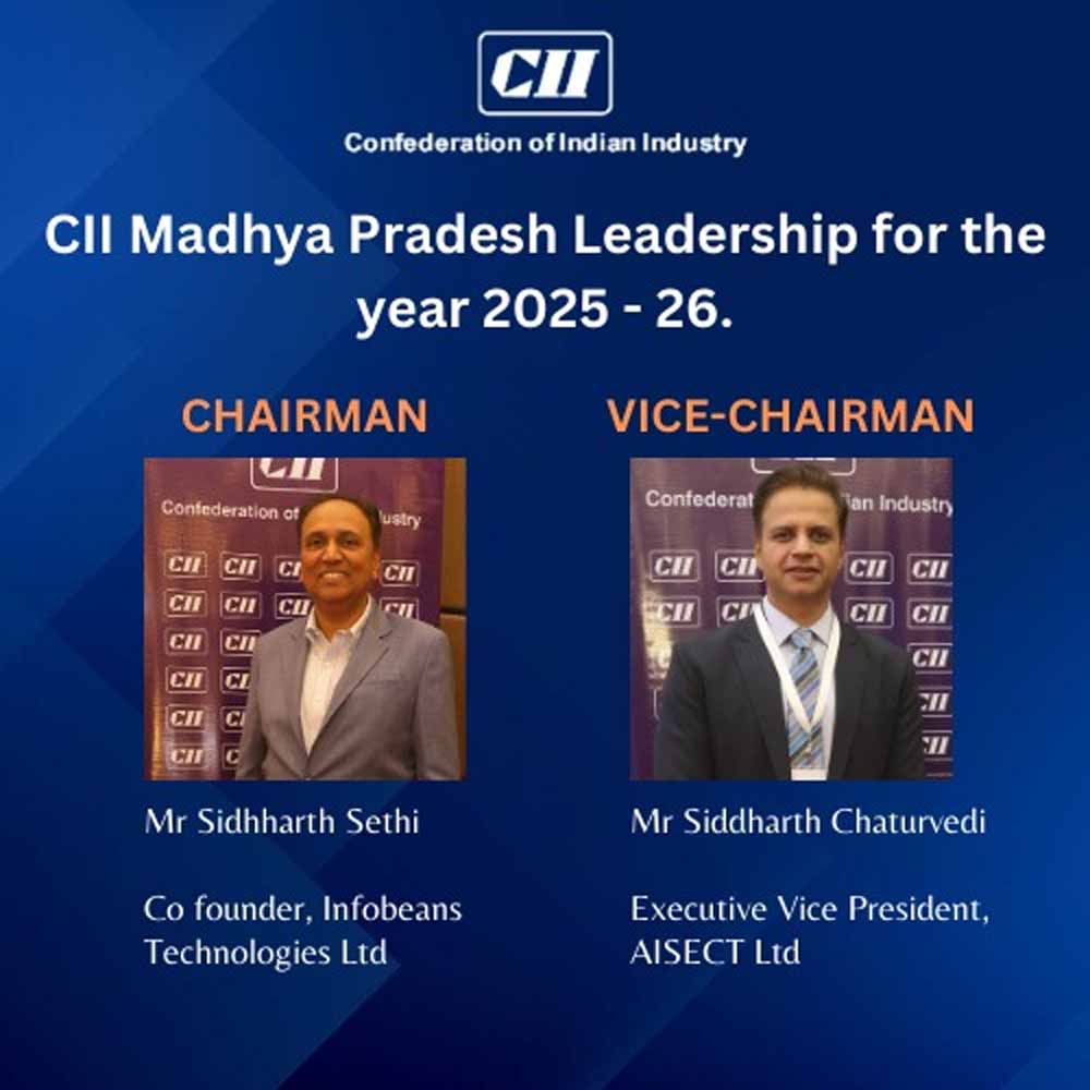 सीआईआई ने वर्ष 2025-26 के लिए मध्य प्रदेश राज्य के लिए नए नेतृत्व का चुनाव किया। सिद्धार्थ सेठी नए अध्यक्ष हैं, सिद्धार्थ चतुर्वेदी को उपाध्यक्ष चुना गया।