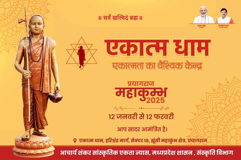 सनातन संस्कृति की दिव्य अनुभूति के महापर्व "महाकुम्भ प्रयागराज : 2025" में तीर्थराज प्रयाग के पावन संगम तट पर आचार्य शंकर सांस्कृतिक एकता न्यास, मध्यप्रदेश द्वारा अद्वैत वेदान्त दर्शन के लोकव्यापीकरण एवं सार्वभौमिक एकात्मता की संकल्पना के उद्देश्य से एक माह 12 जनवरी से 12 फरवरी 2025 तक "एकात्म धाम शिविर" सेक्टर-18, हरिश्चन्द्र मार्ग, महाकुम्भ क्षेत्र, झूंसी, प्रयागराज, उत्तरप्रदेश में किया जा रहा है। एकात्म धाम शिविर में प्रतिदिन अद्वैत वेदान्त पर केन्द्रित संवाद, श्रवण, मनन, निधिध्यासन द्वारा ध्यान, शास्त्रार्थ सभा, संत समागम, शंकर संगीत एवं सांस्कृतिक कार्यक्रम, वैदिक अनुष्ठान एवं भाष्य पारायण, 'एकात्म धाम' प्रकल्प पर केन्द्रित प्रदर्शनी, अद्वैतामृतम्, विमर्श सभा, पुस्तक प्रदर्शनी भी आकर्षण का केंद्र होगी।