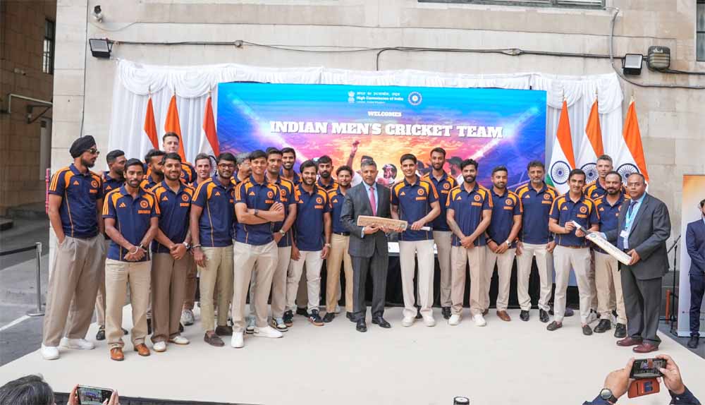 भारतीय पुरुष क्रिकेट टीम ने मंगलवार को लंदन में स्थित भारतीय उच्चायोग का दौरा किया। इस दौरान कप्तान शुभमन गिल और मुख्य कोच गौतम गंभीर ने हस्ताक्षर किए हुए क्रिकेट बैट भारतीय उच्चायुक्त विक्रम दोराईस्वामी और उप उच्चायुक्त सुजीत घोष को भेंट किए।