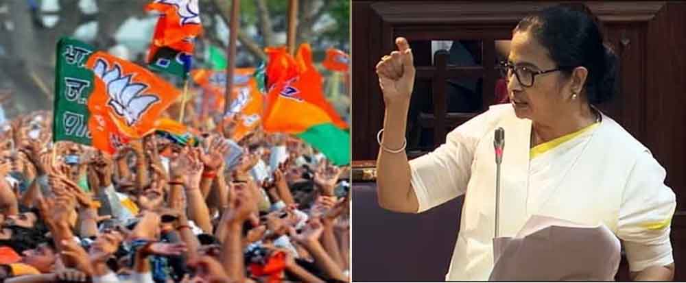 उन्होंने इस पर प्रतिक्रिया देते हुए कहा, मैं बंगाल को विभाजित करने की चुनौती देती हूं। भाजपा ने सोमवार को विधायक के तौर पर कटाव नियंत्रण और बाढ़ शमन पर चर्चा के लिए सुमन कांजीलाल का नाम शामिल किए जाने के विरोध में पश्चिम बंगाल विधानसभा से वॉकआउट कर गए। भाजपा नेता संकर घोष ने बताया कि कांजीलाल जिन्हें अलीपुर से भाजपा विधायक बनाया गया है, वह तृणमूल कांग्रेस (टीएमसी) में शामिल हो गई हैं। इसका विरोध करते हुए घोष ने स्पीकर बिमान बनर्जी से कहा कि भाजपा विधायक दल ने चर्चा में शामिल होने के लिए उनका नाम नहीं दिया था। स्पीकर बिमान बनर्जी ने कहा कि उन्होंने चर्चा में भाग लेने के लिए कांजीलाल का नाम शामिल करने की अनुमति दे दी है। इसपर भाजपा विधायकों ने नारे लगाते हुए विधानसभा से वॉकआउट किया।