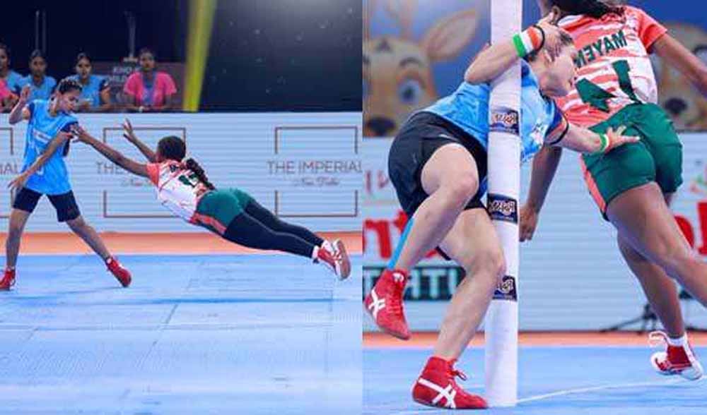 नीली जर्सी में भारतीय महिलाओं ने चैथरा बी के ड्रीम रन के साथ शानदार शुरुआत की। चैथरा ने दक्षिण अफ्रीका की सिनेथेम्बा मोसिया द्वारा बाहर किए जाने से पहले अकेले ही पांच अंक बटोर लिए थे। टर्न 2 में भारतीय महिलाओं ने दक्षिण अफ्रीकी खिलाड़ियों को कई बैचों में आउट किया और महत्वपूर्ण अंक अर्जित किए और इस टर्न के अंत में 33-10 से मुकाबला भारतीय महिलाओं के पक्ष में था। ड्रीम रन टर्न 3 के अंत में वैष्णवी पोवार, नसरीन शेख और भीलरदेवी ने पांच मिनट तक अच्छा खेल दिखाया। टर्न 4 में दक्षिण अफ्रीकी खिलाड़ियों के लिए सबसे लंबा बैच सिर्फ एक मिनट और 45 सेकंड तक चला, जिससे भारतीयों ने फाइनल में अपनी जगह पक्की कर ली। नसरीन शेख और रेशमा राठौड़ ने टीम को जीत दिलाई और अंतिम स्कोर 66-16 रहा।