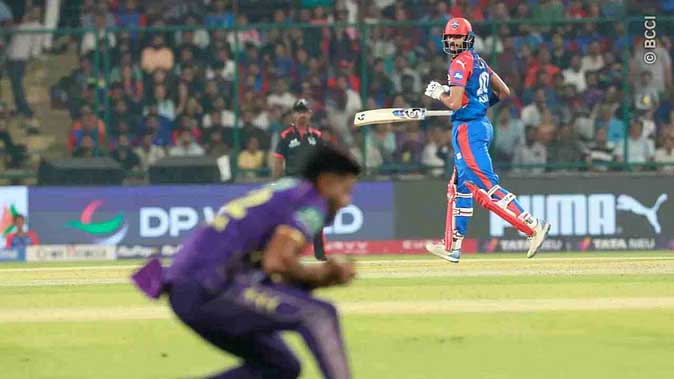 चौथे विकेट के लिए फाफ डुप्लेसिस को कप्तान अक्षर पटेल का साथ मिला। दोनों के बीच 42 गेंदों में 76 रनों की साझेदारी हुई। नरेन ने अक्षर को अपना शिकार बनाया। वह चार चौके और तीन छक्के की मदद से 43 रन बनाकर आउट हुए। वहीं, फाफ डुप्लेसिस ने 31 गेंदों में इस सत्र का अपना दूसरा पचासा पूरा किया। वह 45 गेंदों में 62 रन बनाकर पवेलियन लौटे। दिल्ली के लिए विप्रज निगम ने 38 रन बनाए। हालांकि, वह अपनी टीम को जीत नहीं दिला सके। उनके अलावा ट्रिस्टन स्टब्स ने एक रन, आशुतोष शर्मा ने सात रन और मिचेल स्टार्क खाता खोले बगैर आउट हो गए। वहीं, दुष्मंथा चमीरा और कुलदीप यादव क्रमश: दो और एक रन बनाकर नाबाद रहे।