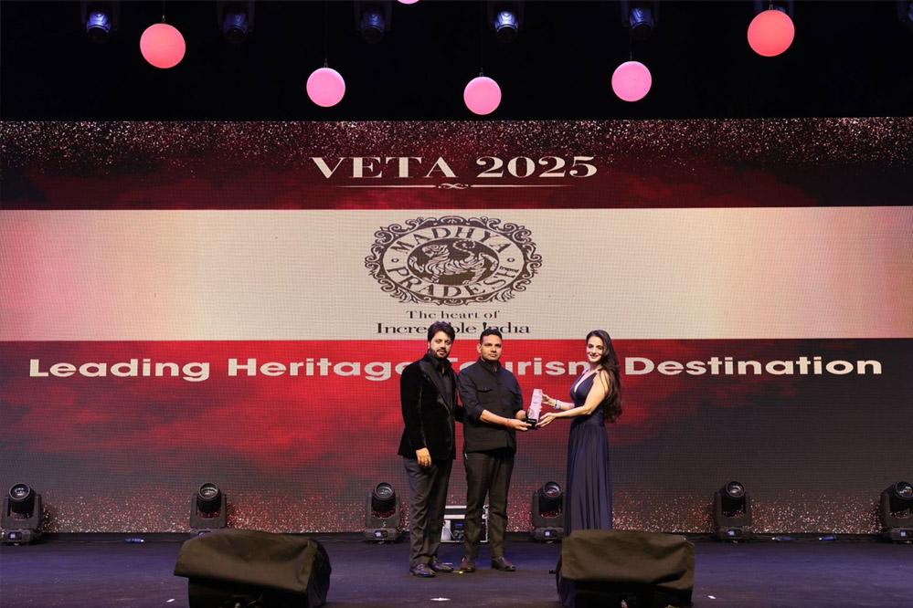 मध्य प्रदेश टूरिज़्म बोर्ड को प्रतिष्ठित वर्सेटाइल एक्सीलेंस ट्रैवल अवॉर्ड्स 2025 (VETA) में 'लीडिंग हेरिटेज टूरिज़्म डेस्टिनेशन' के खिताब से सम्मानित किया गया है। यह सम्मान राज्य के समृद्ध एतिहासिक स्थलों व सांस्कृतिक धरोहरों को राष्ट्रीय व अंतराष्ट्रीय स्तर पर प्रचारित करने हेतु किये जा रहे नवाचारों के लिये दिया गया है।