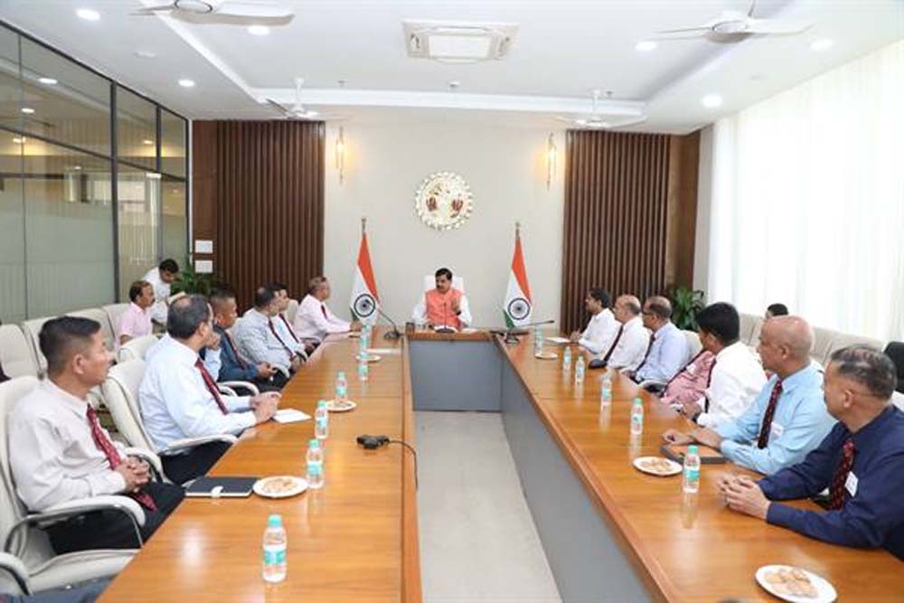 मुख्यमंत्री डॉ. यादव से नेशनल डिफेंस कॉलेज (एनडीसी), नई दिल्ली द्वारा "राष्ट्रीय सुरक्षा एवं रणनीति" विषय पर आयोजित अध्ययन यात्रा के लिए मध्यप्रदेश राज्य की यात्रा के लिए आए दल ने सौजन्य भेंट की। देश के 5 मित्र देशों के प्रतिनिधि भी अध्ययन दल के साथ मध्यप्रदेश आए हैं। एनडीसी द्वारा पूरे देश के लिए ऐसे 8 अध्ययन समूह तय किए गए हैं, जिनमें से 16 सदस्यीय एक समूह मध्यप्रदेश की अध्ययन यात्रा पर है। मध्यप्रदेश आए यात्रा दल को यहां प्रदेश में 'कृषि एवं सहकारिता' अध्ययन शीर्षक दिया गया है। आरसीवीपी नरोन्हा प्रशासन एवं प्रबंधकीय अकादमी को इस समूह को मध्यप्रदेश की अध्ययन यात्रा कराने का दायित्व मिला है।