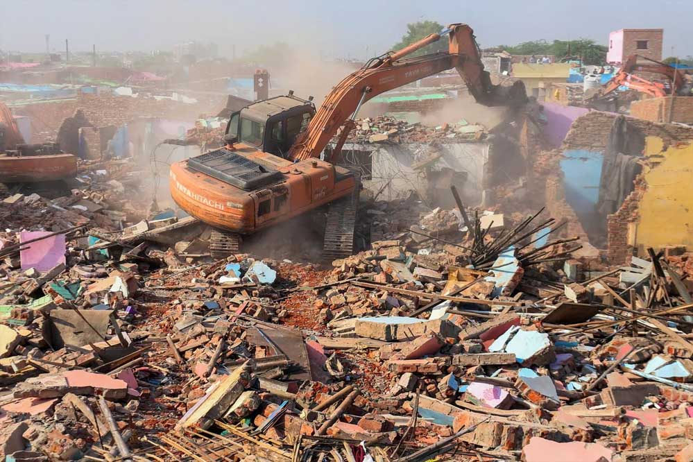 गुजरात के अहमदाबाद में चंडोला तालाब के किनारे एक साथ गरजे करीब 50 बुलडोजरों ने एक ही दिन में करीब 8500 मकानों/ढांचों को पत्थर-पत्थर कर डाला। अब कुछ धार्मिक ढांचे ही बचे हैं। पुलिस का कहना है कि इन्हें सम्मान के साथ हटाया जाएगा। अहमदाबाद नगर निगम ने अवैध अतिक्रमण को हटाकर 2.5 लाख वर्ग मीटर जमीन खाली कराई है।