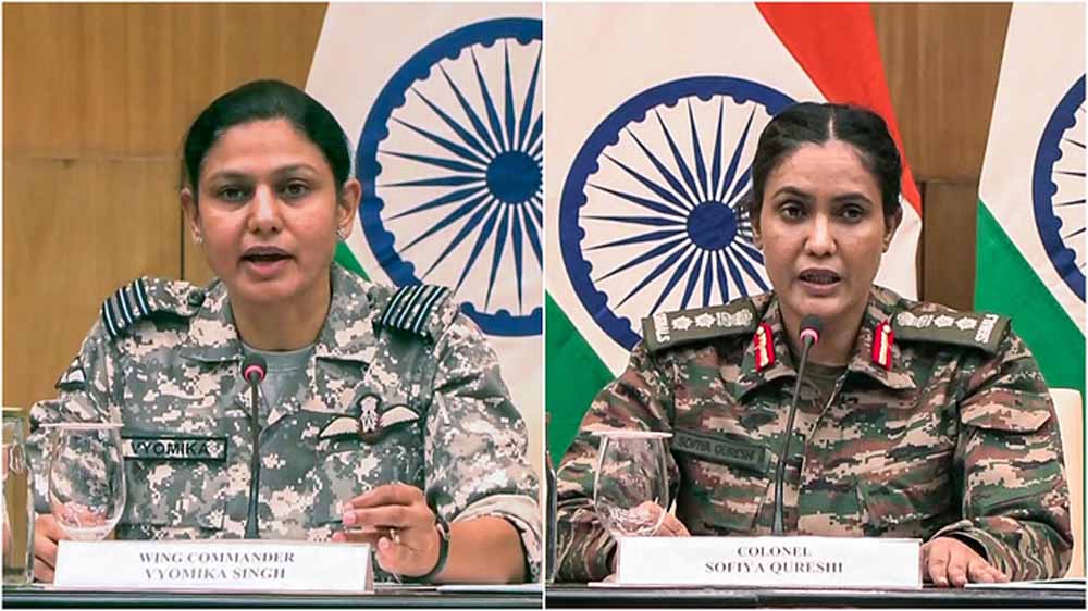 कर्नल सोफिया कुरैशी और विंग कमांडर व्योमिका सिंह ने बताया, 'पाकिस्तानी सेना ने सैन्य बुनियादी ढांचे को निशाना बनाने की नीयत से पूरी पश्चिमी सीमा पर भारतीय वायुक्षेत्र का कई बार उल्लंघन किया। पाकिस्तानी सेना ने नियंत्रण रेखा पर भारी कैलिबर वाले हथियारों से गोलाबारी भी की। अंतरराष्ट्रीय सीमा और नियंत्रण रेखा पर लेह से लेकर सरक्रीक तक 36 जगहों पर 300-400 ड्रोन का इस्तेमाल कर घुसपैठ का प्रयास किया। भारतीय सशस्त्र बलों ने काइनेटिक और नॉन काइनेटिक साधनों से कई ड्रोन मार गिराए। बड़े पैमाने पर ड्रोन के जरिए हवाई घुसपैठ का संभावित उद्देश्य देश की वायुरक्षा प्रणालियों का परीक्षण और खुफिया जानकारी जुटाना था। ड्रोन के मलबे की फॉरेंसिक जांच कराई जा रही है। प्रारंभिक जांच में तुर्किये के ड्रोन होने बात पता चली है।'