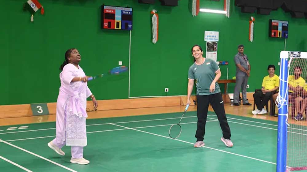 उसने मुर्मू और नेहवाल के मुकाबले की तस्वीरें साझा करते हुए लिखा, ‘राष्ट्रपति द्रौपदी मुर्मू का खेलों के प्रति स्वाभाविक प्रेम तब देखने को मिला जब उन्होंने राष्ट्रपति भवन के बैडमिंटन कोर्ट में बहुचर्चित खिलाड़ी साइना नेहवाल के साथ बैडमिंटन खेला.’ साइना सहित पद्म पुरस्कार विजेता महिलाएं ‘उनकी कहानी-मेरी कहानी’ व्याख्यान श्रृंखला के तहत राष्ट्रपति भवन सांस्कृतिक केंद्र में व्याख्यान देंगी और दर्शकों से बातचीत करेंगी.