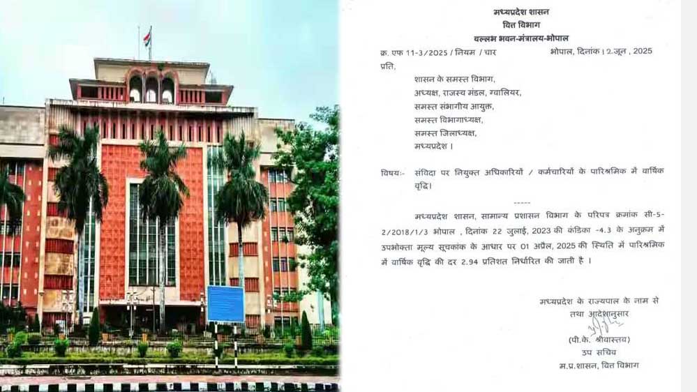 मध्यप्रदेश के डेढ़ लाख संविदा अधिकारियों और कर्मचारियों के वेतन में 2.94 प्रतिशत की बढ़ोतरी की गई, कर्मचारी संघ को 4% की थी उम्मीद