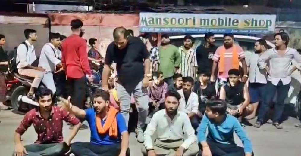 कोतवाली के बाहर प्रोटेस्ट करते हिंदूवादी संगठन के लोग