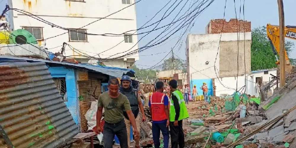 प्रशासन ने खंडवा में 137 घरों को तोड़ने का काम शुरू किया , इसमें 98 घरों को जमींदोज कर दिया गया