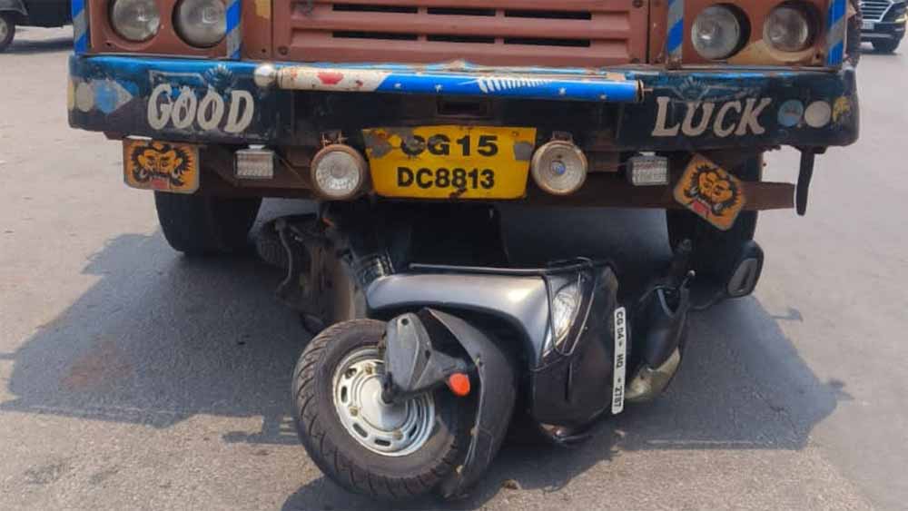 राजधानी रायपुर के तेलीबांधा रिंग रोड पर आज सुबह एक दर्दनाक सड़क हादसा हो गया. एक ट्रक ने स्कूटी सवार 27 साल की युवती को रौंद दिया, जिससे उसकी की मौत हो गई. इस घटना से क्षेत्र में सनसनी फैल गई. वहीं राष्ट्रीय मार्ग जाम हो गया है. मौके पर पहुंची पुलिस ने मर्ग कायम कर शव को पोस्टमॉर्टम के लिए भेज दिया है. साथ ही मौके से फरार वाहन चालक को भी पुलिस ने कुछ ही देर में गिरफ्तार कर लिया है.