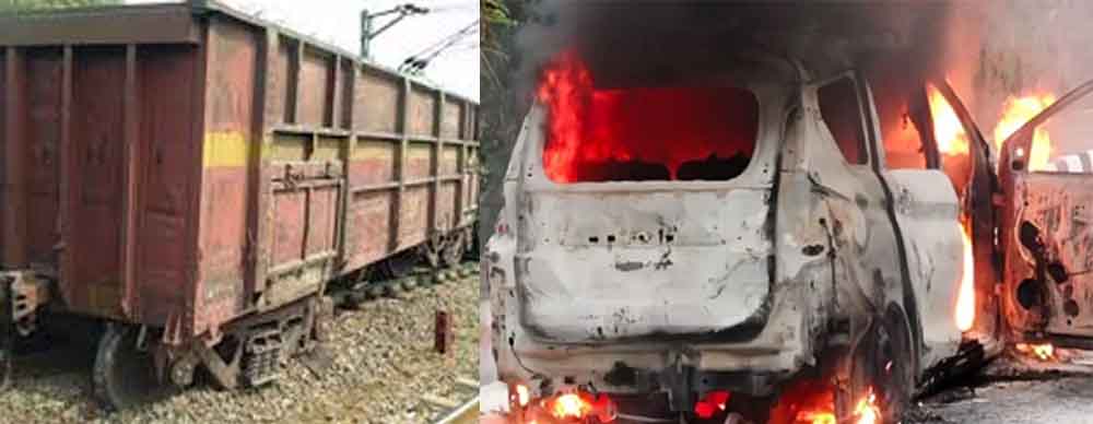 हैदराबाद में कार में आग लगने से दो जिंदा जले, आंध्र प्रदेश में पटरी से उतरी मालगाड़ी