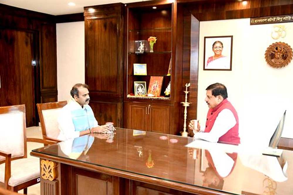 मुख्यमंत्री डॉ. यादव से केंद्रीय सूचना एवं प्रसारण राज्यमंत्री मुरुगन ने की सौजन्य भेंट