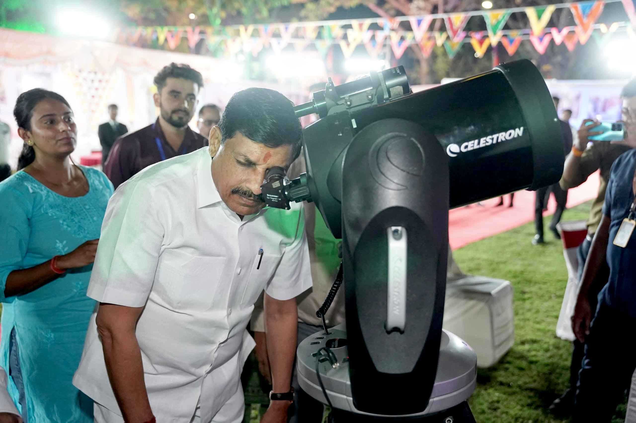 मुख्यमंत्री डॉ. मोहन यादव ने सोमवार की शाम मध्यप्रदेश विज्ञान एवं प्रौद्योगिकी परिषद् (मैपकॉस्ट) की 17वीं "विज्ञान मंथन यात्रा" का मुख्यमंत्री निवास परिसर से शुभारंभ किया। उन्होंने इस यात्रा के लिए चयनित प्रतिभाशाली भावी वैज्ञानिक बच्चों को बधाई देते हुए उनके साथ संवाद भी किया। उन्होंने एक शिक्षक के रूप में बच्चों से सवाल-जवाब भी किए। मुख्यमंत्री डॉ. यादव ने इस अवसर पर विद्यार्थियों के साथ मुख्यमंत्री निवास परिसर से टेलीस्कोप द्वारा विभिन्न ग्रहों को देखा। उन्होंने विद्यार्थियों से अंतरिक्ष विज्ञान पर विस्तार पूर्वक संवाद किया।
