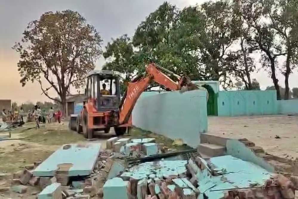 बलरामपुर में सार्वजनिक भूमि पर निर्माणाधीन मदरसे को रविवार को ध्वस्त कर दिया गया. यहां अब तक 30 मदरसे, 10 मजार और 1 ईदगाह को अवैध पाते हुए ध्वस्त किया गया है. इनमें 10 मदरसे, 10 मजार और 1 ईदगाह सार्वजनिक भूमि पर स्थित थे, जबकि 20 मजारें निजी भूमि पर अवैध रूप से निर्मित थीं.