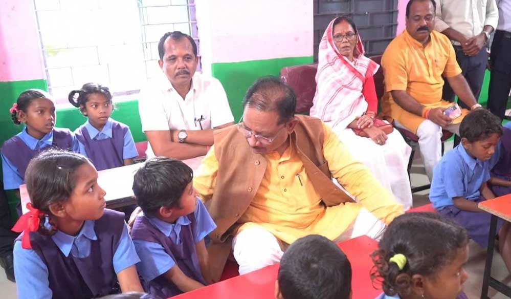 मुख्यमंत्री विष्णु देव साय नन्हें बच्चों के बीच बैठकर स्मार्ट क्लास-रूम से हुए रू-ब-रू